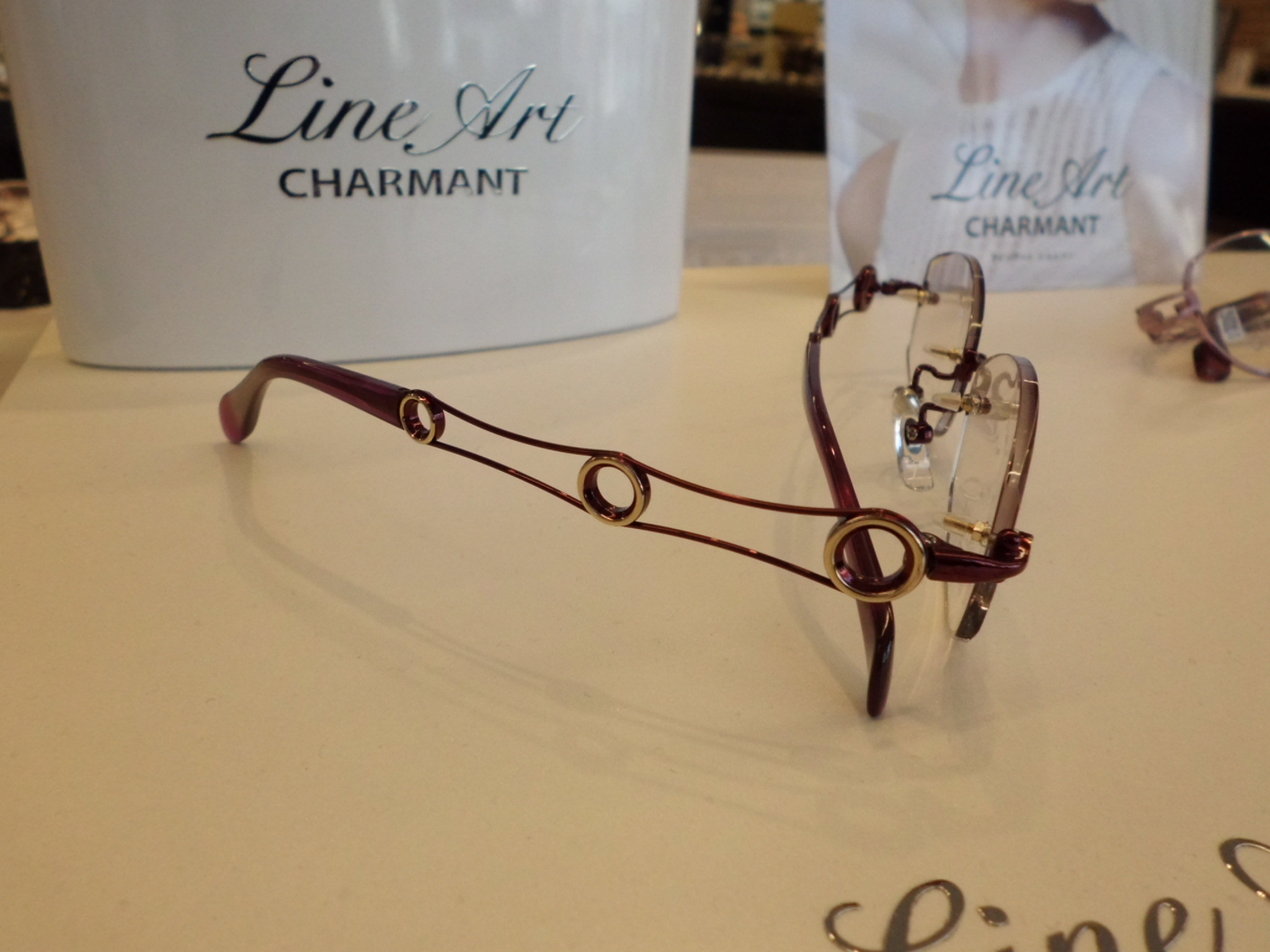 個性的な造形で、お色はワインレッドなので優雅な印象を与えてくれます。