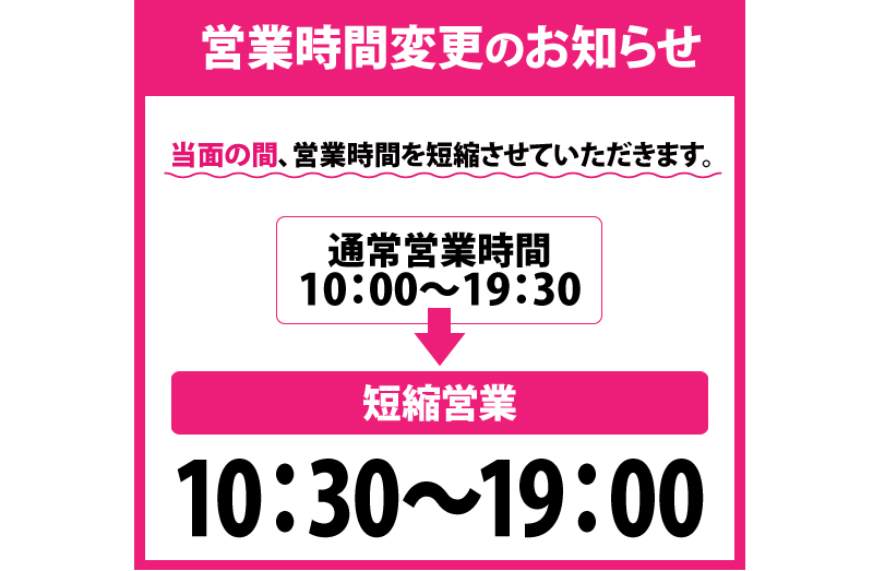 【重要】新型コロナウイルス感染拡大防止に伴う、営業時間短縮のお知らせ